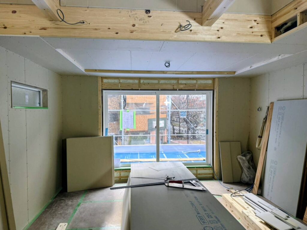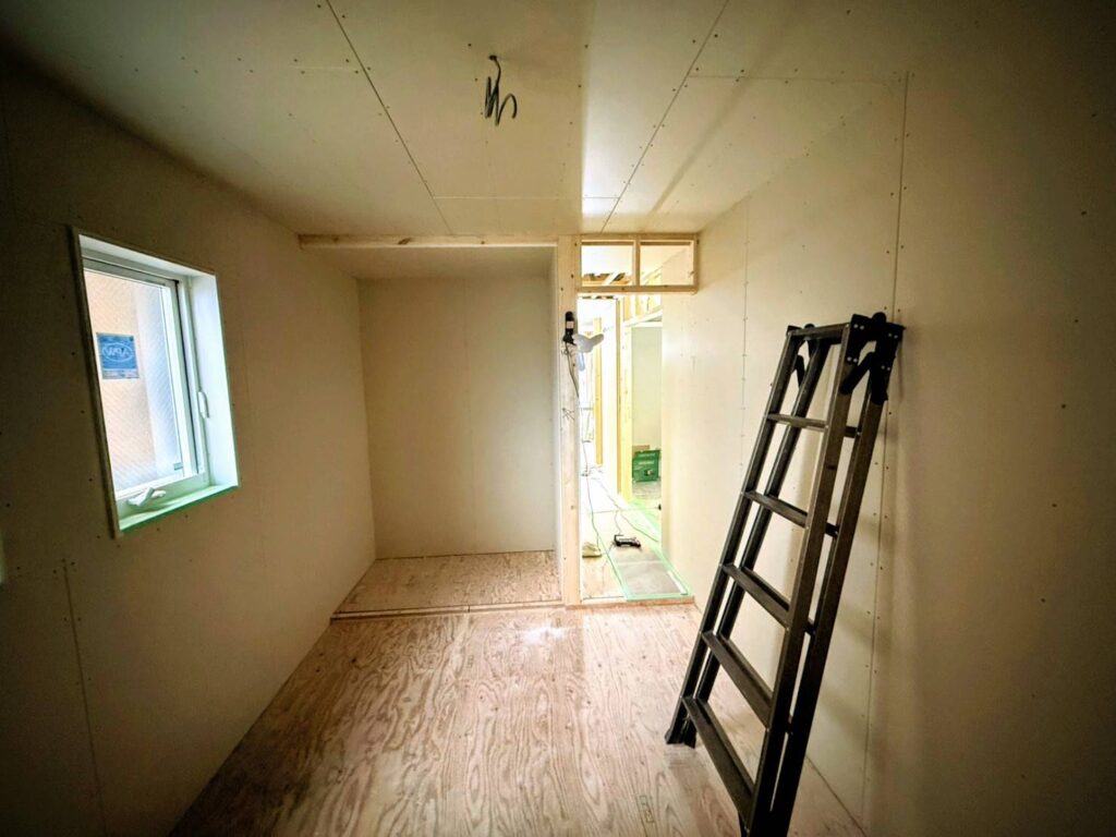 ただいま石こうボード施工中。
