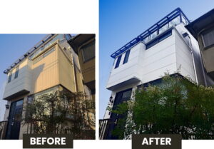 横浜市 O様邸|外壁・屋根リフォーム工事で安心と美観を取り戻す 工事概要 施工前の課題 📸 施工前写真 施工内容・こだわりポイント 1. 高圧洗浄 外壁・屋根の汚れやカビを徹底的に洗浄し、塗料がしっかり密着する状態を整え […] - 【横浜市M様邸】外壁塗装・雨樋・換気口まで一新!住まいの寿命を延ばす外装トータルリフォーム