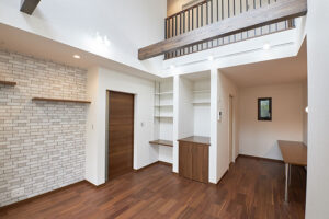 何をどこに収めるかをヒアリングし、玄関・洗面・リビング・納戸・ロフトと要所に収納を配置