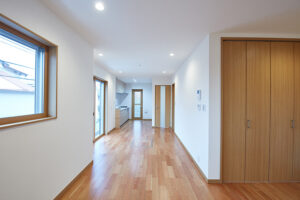 衣類や寝具、鞄・バック・帽子など小物、細かく分類しながらそれぞれの収め方を考え、クローゼット収納の他、オープン棚収納などを組み合わせて検討することで、ご要望の間取り構成をご提案・実現しました。