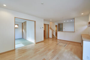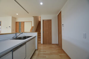 土間収納とリビングイン階段のある、住み心地が良い家となりました。