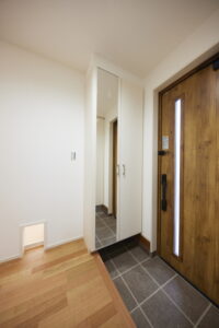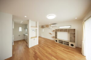 ネコくぐり戸、壁ステップなど、出来るだけ活動エリアを固定することなく ネコにストレスを与えない配置をご提案 外ネコ用のステップも作りましたが、こちらは慣れるまで難しそうです。